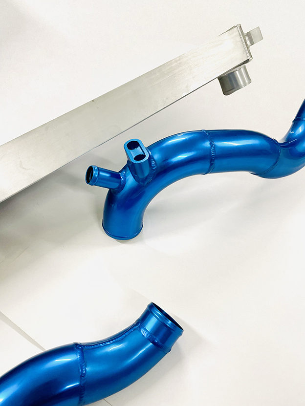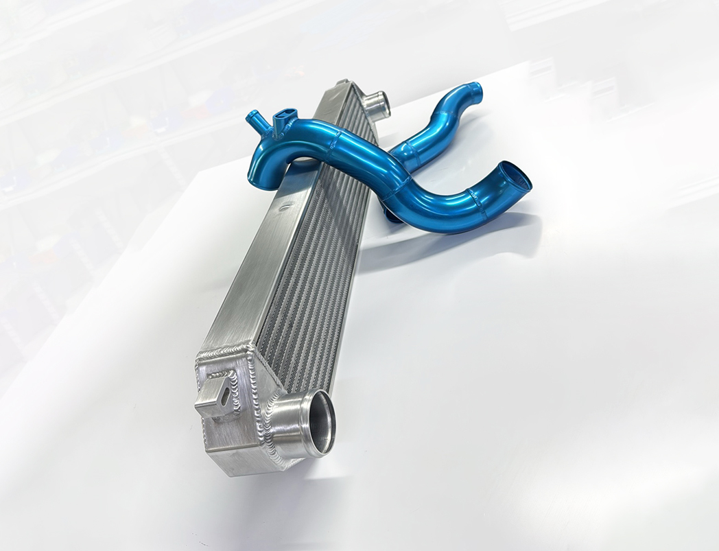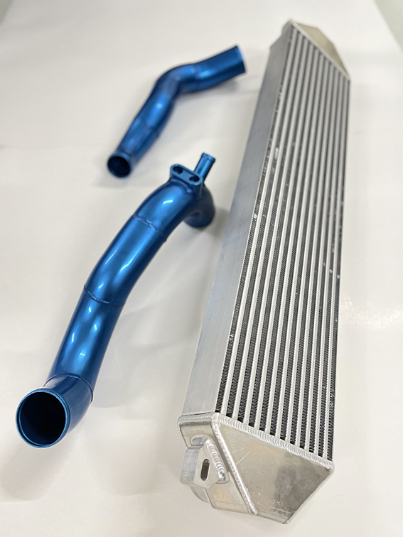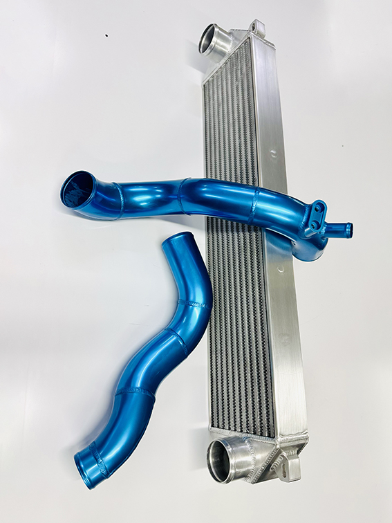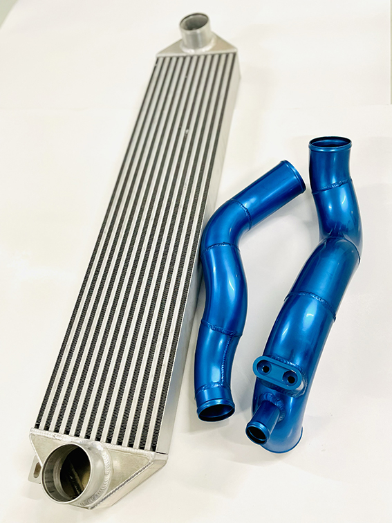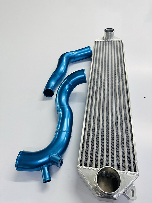 Escort WRC Intercooler Kit with High Efficiency Core and Blue Anodized Pipes.