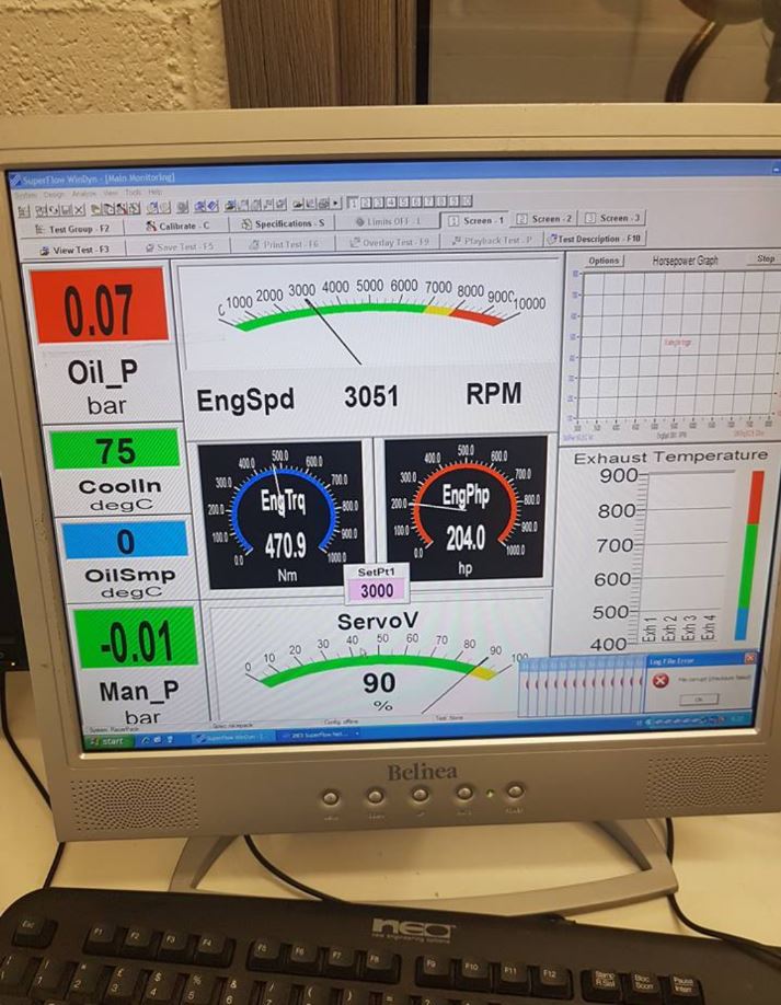 In-house Superflow 902 engine dyno facility for engines developments and mapping.